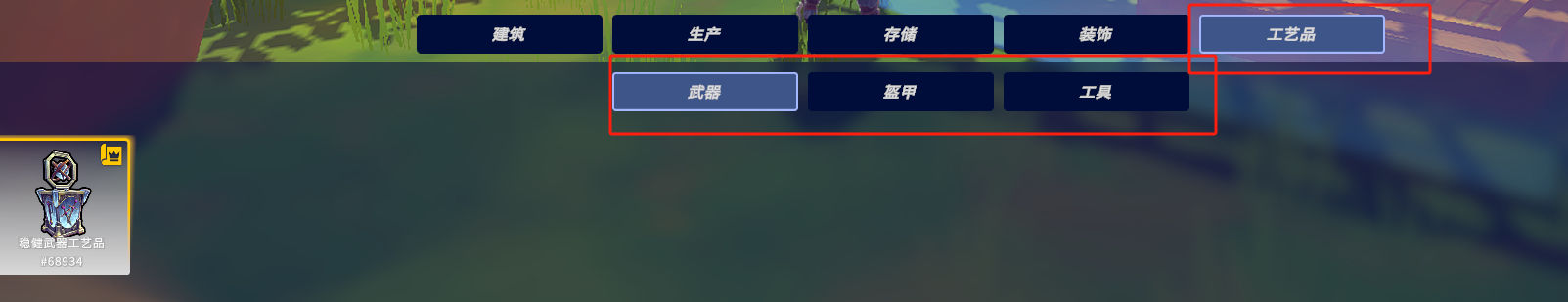 2.按tab键建造武器，盔甲，工具的工作台，然后将武器神器放置在工作台附近，即可激活武器神器。