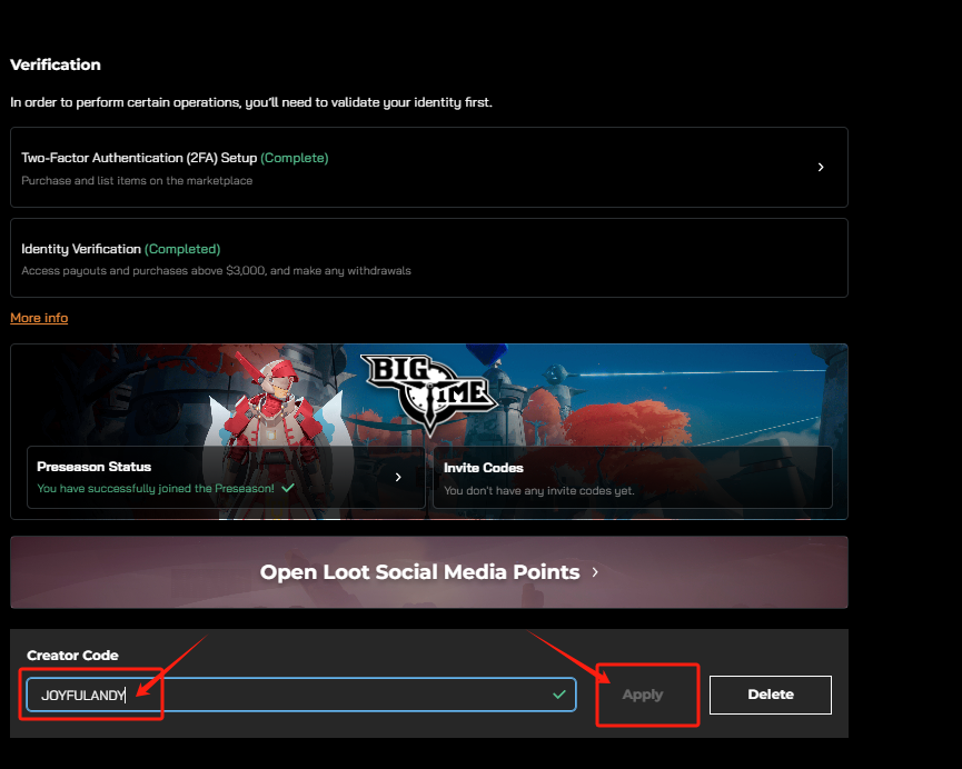 <mark style="color:red;">或者通过此链接可以直接绑定</mark>[<mark style="color:red;">https://openloot.com/ambassador/link?code=JOYFULANDY</mark>](https://openloot.com/ambassador/link?code=JOYFULANDY)