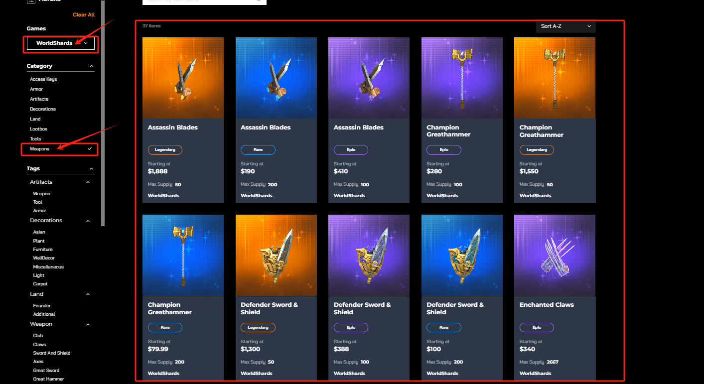 ①**制作** 武器、盔甲、工具NFT