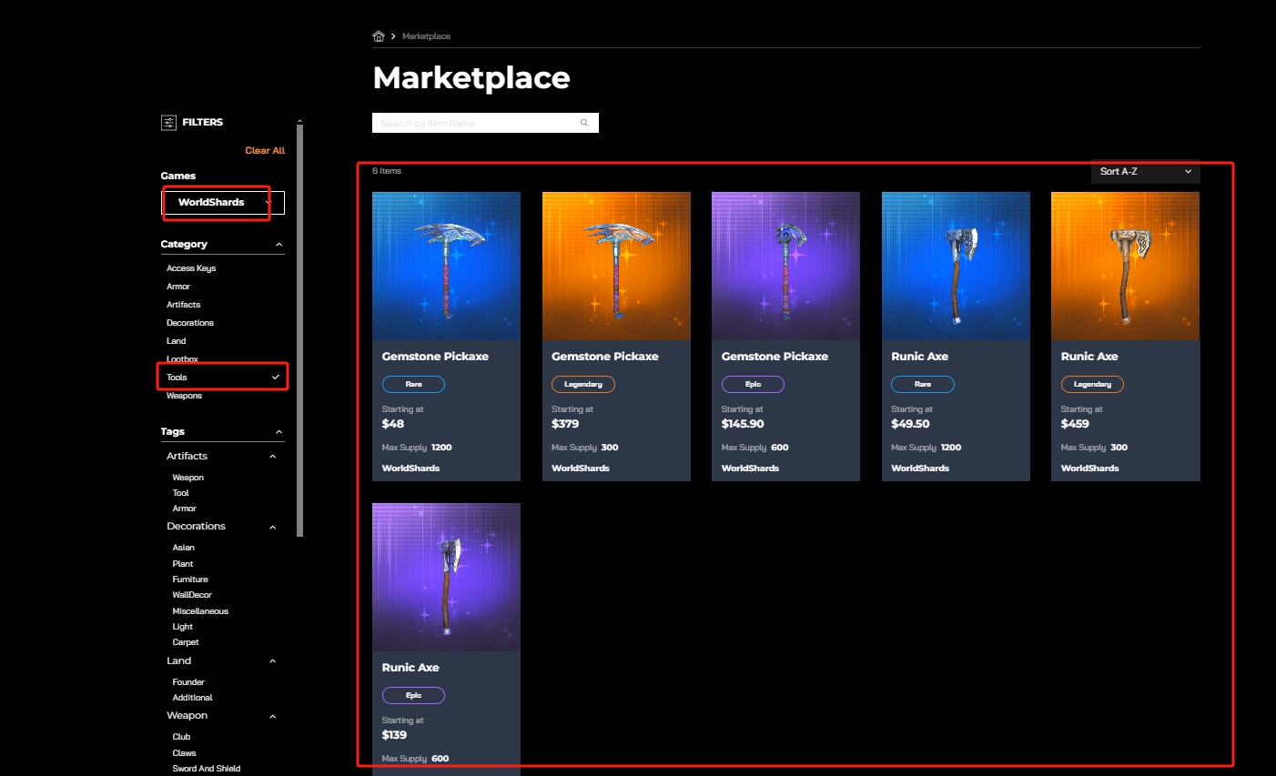 3、工具NFT：分为斧头和镐头，其余同上<mark style="color:red;">**（如果玩过bigtime，相当于沙漏）**</mark>