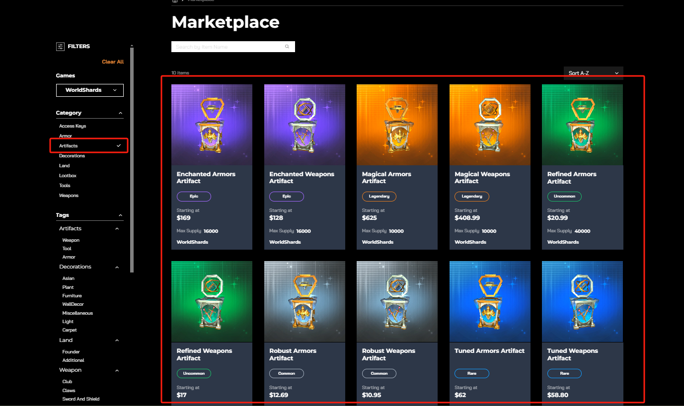 * 拥有岛屿NFT（创始岛屿，附属岛屿），便可以安装特定数量的神器NFT（武器，盔甲，工具）