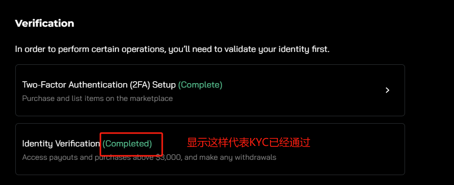 2、在openloot官网里把KYC（实名认证）过了，**必须要过**，不然后面无法充值和提现。